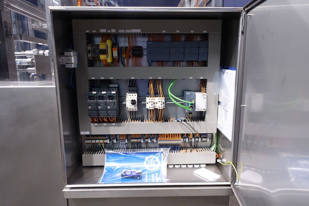 Automatic case packer. Fully reconditioned for butter packages in a carton box. Currently set for 250 gram packages of 100 x 75 x 37 mm, pack scheme 4x2x2 = 16 packages of 250 gram (100x75x35mm) in 1 box (4 kg per box). Type of cartons: American folding box. New control panel with new Siemens S7-1200 PLC and Siemens Simatic HMI, KTP700. Reconditioned Nordson hotmelt unit with glue hoses. Machine frame complete stainless steel. New polycarbonate doors with protection for opening. Including infeed and outfeed rolling conveyor. Instruction manual (Dutch), spare part manual and electric scheme available. Machine with CE declaration of conformity. Machine speed synchronised with a Benhil 8345 or Benhil 8380 model (20-90 packages / minute).