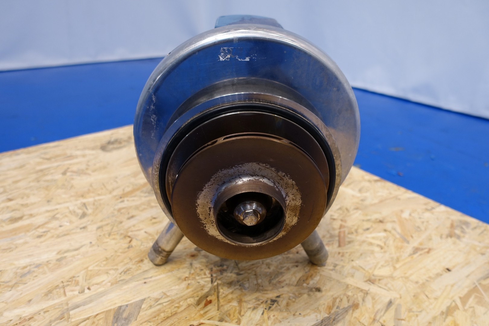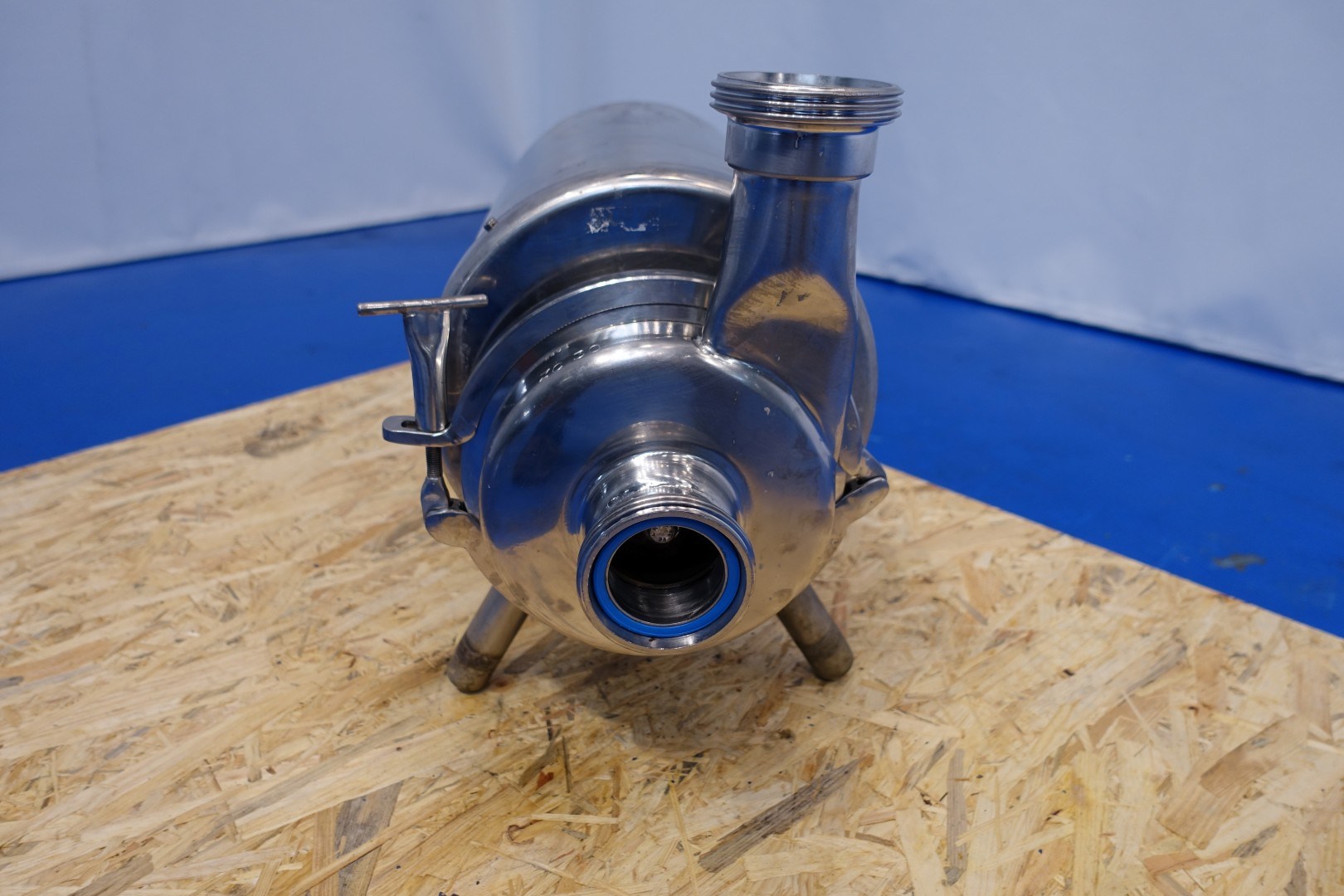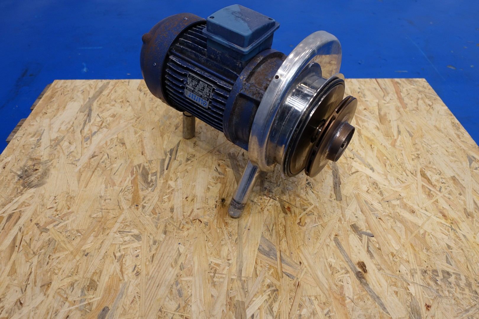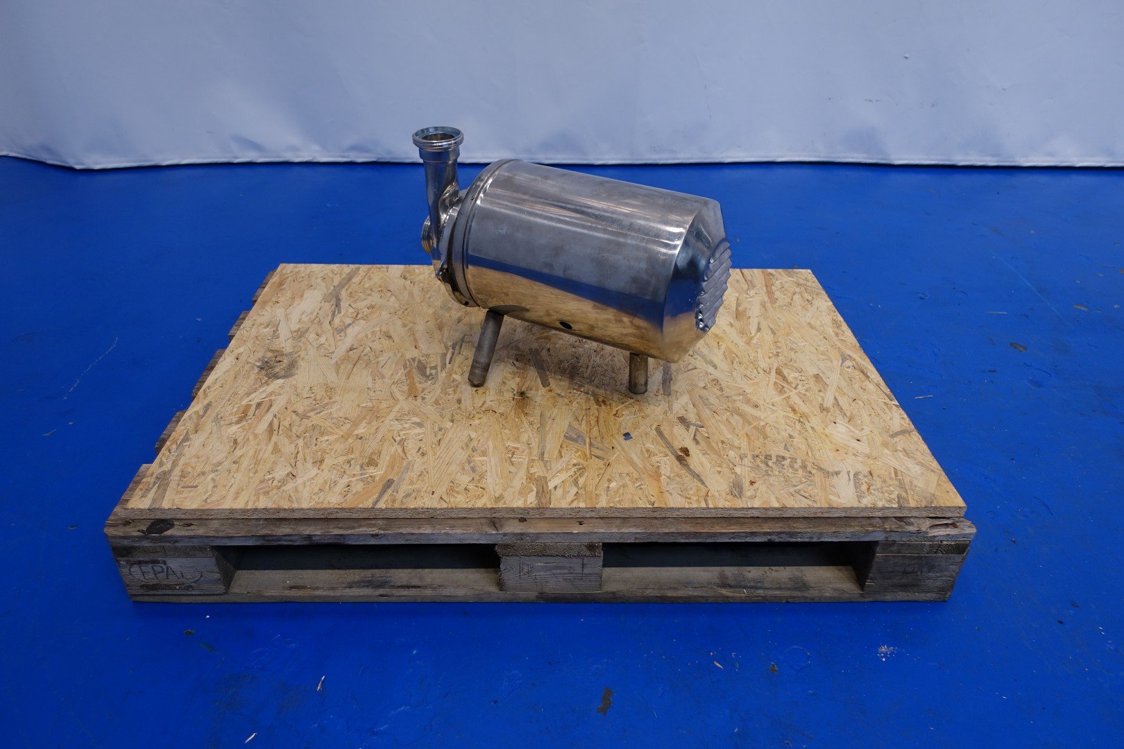 Sanitary centrifugal pump. Current motor: 2,2 kW - 5,5 A - 50 Hz. Impellor diameter: 150 mm. Connections: (In) 2,5" Din / (Out) 2,5" Din. Total dimensions: 53x25x39 (lxwxh) cm - weight: 66kg.