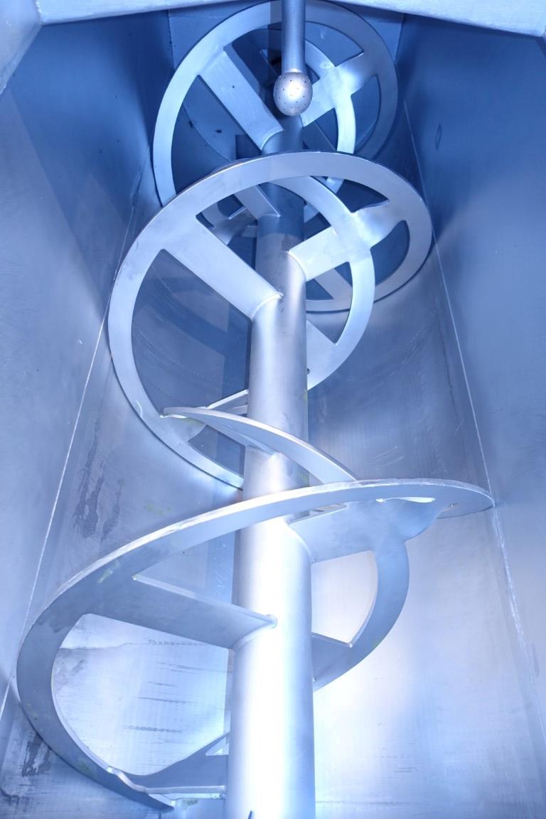 Stainless steel (SS304) ribbon blender (single shaft), previously used for mixing of cheeses in preparation of processed cheese. Main motor for driving ribbon: 15 kW - n2: 42 rpm. Bottom section with 2 outfeed augers with 1 outfeed flange with 1 connections. Motor of augers 4,4 kW - n2: 13 rpm. CIP cleanable with spraybowls. Manhole. Breather. Control panel. Some original drawings available.