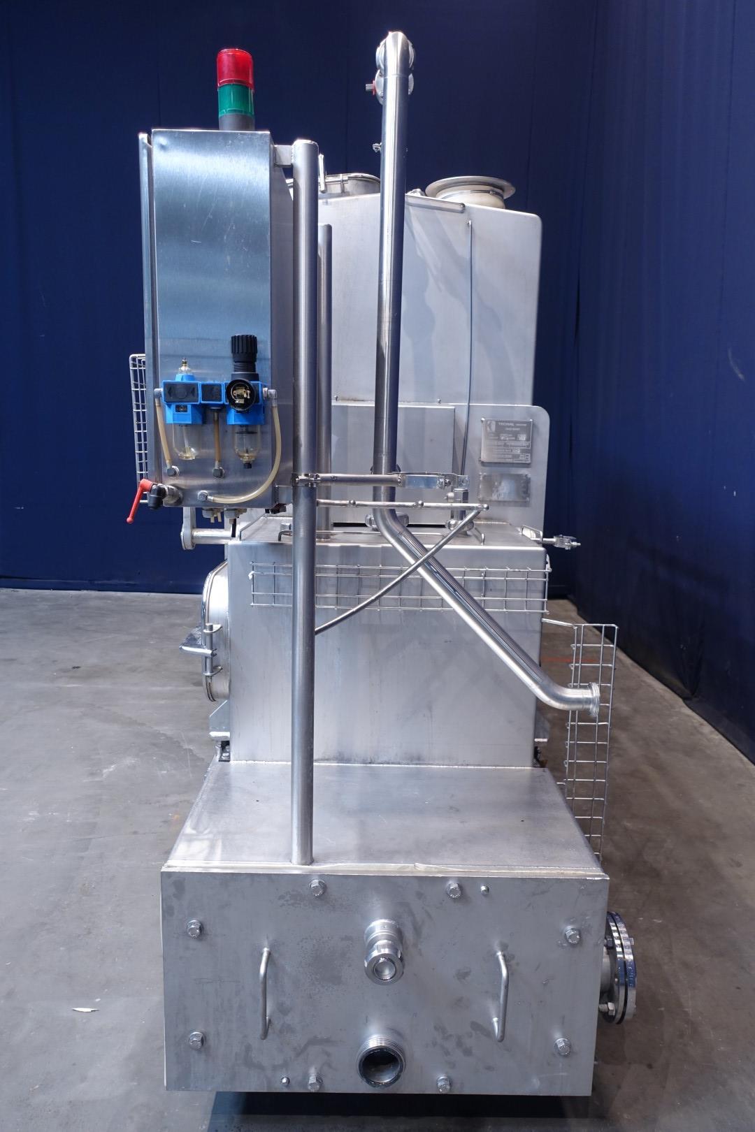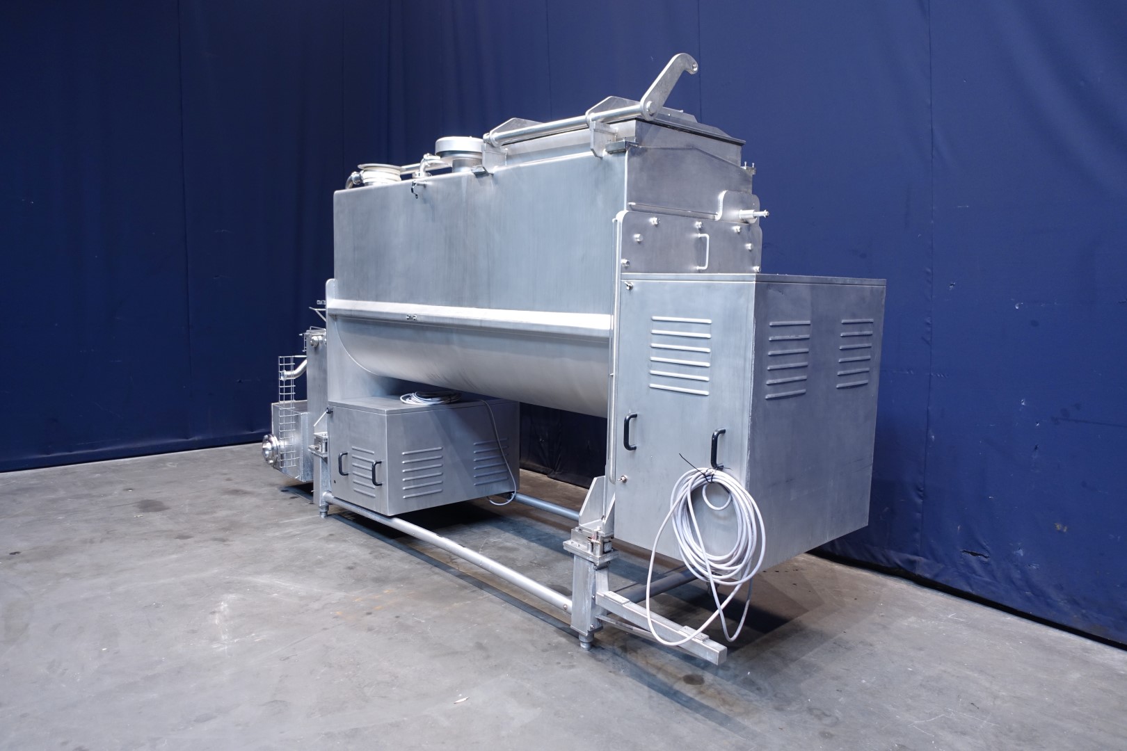 Stainless steel (SS304) ribbon blender (single shaft), previously used for mixing of cheeses in preparation of processed cheese. Main motor for driving ribbon: 15 kW - n2: 42 rpm. Bottom section with 2 outfeed augers with 1 outfeed flange with 1 connections. Motor of augers 4,4 kW - n2: 13 rpm. CIP cleanable with spraybowls. Manhole. Breather. Control panel. Some original drawings available.