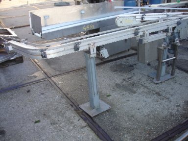 Transport conveyor 2,40 mtr. with bend Transport conveyor with bend. 2,40 straight, bend and 1,20 straight. Width of 10 cm. Motor: 0,37 kW