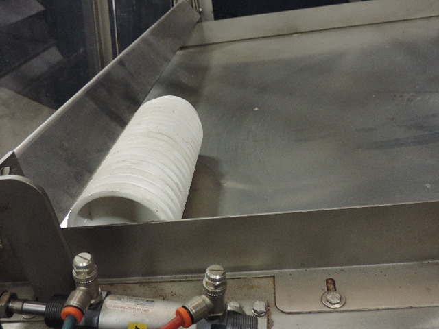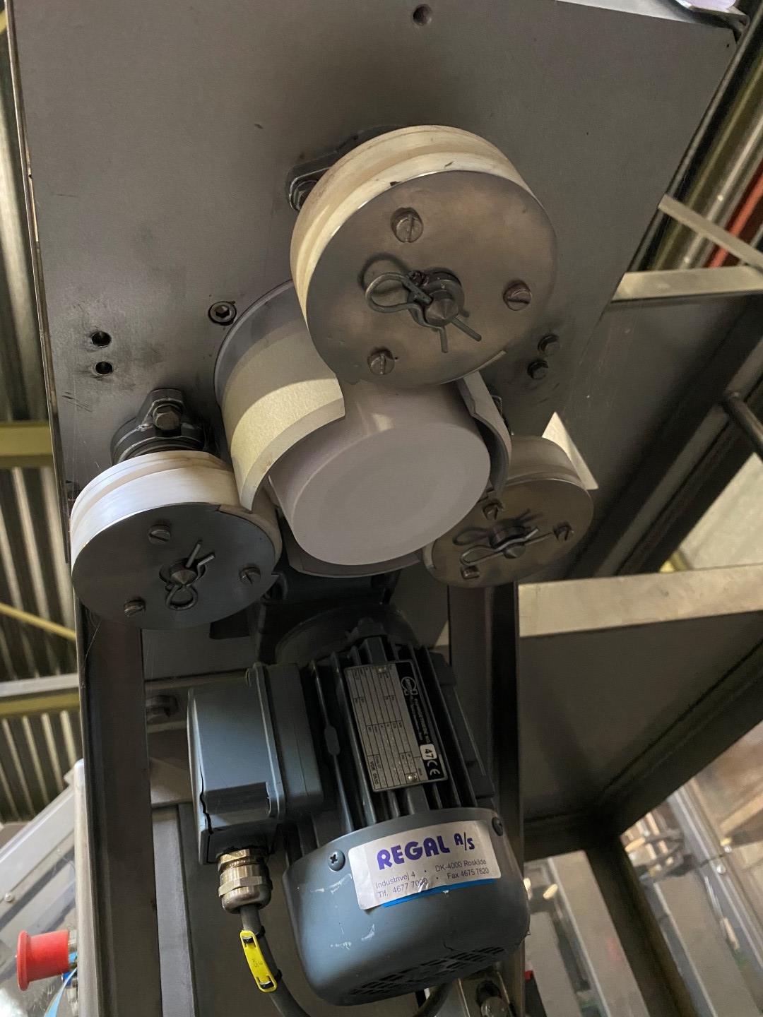 Cup destacking unit for preformed cups with a diameter of 95 mm. Single head. Pneumatic. Motor: 0,09 kW. Control panel with Siemens S7-200 PLC. Total dimensions: 130 x 80 x 190 cm.