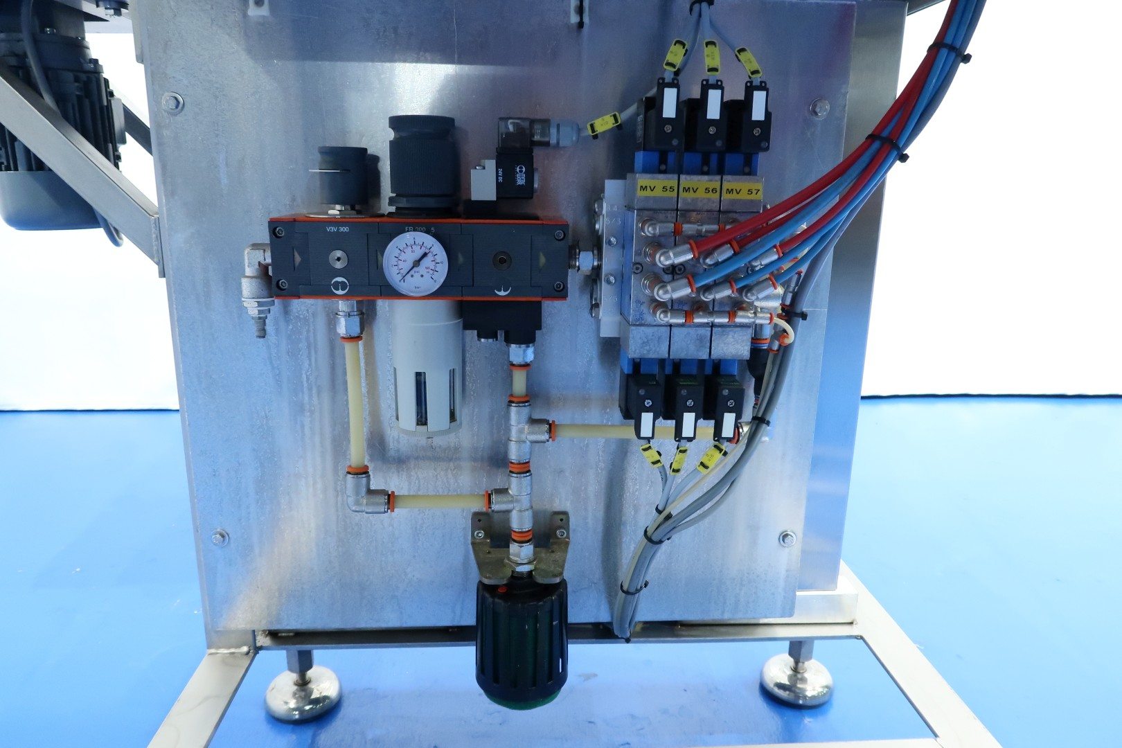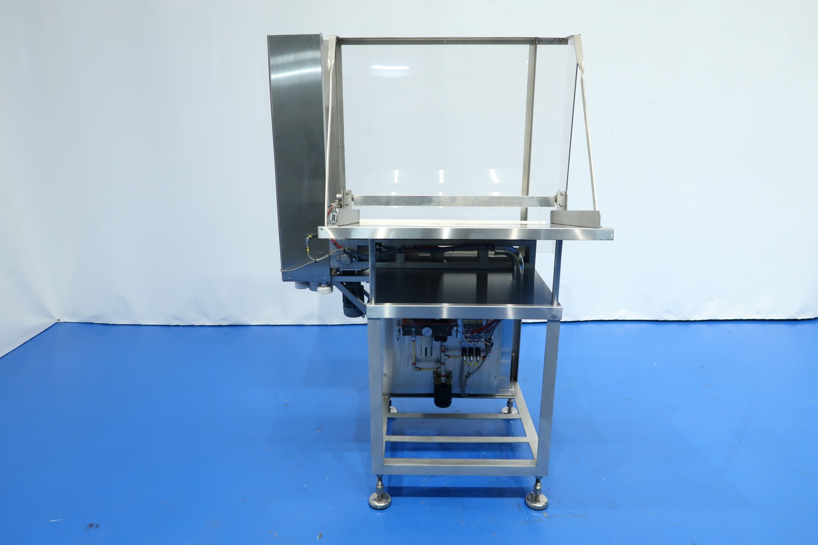Cup destacking unit for preformed cups with a diameter of 95 mm. Single head. Pneumatic. On stainless steel frame with adjustable feet. Motor: 0,09 kW. Control panel with Siemens S7-200 PLC. Total dimensions: 135x100x196 (lxwxh) cm - weight: 205 kg.
