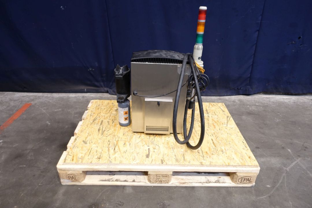 Continous inktjet printer. Used for coding 250 gram butterpacks. Last used in year: 2024 in a French speaking country. Power: 3 A - 120 W - 50 Hz - 100-120V. Dimensions: 42 x 30 x 82 cm. Weigth 57 kg's. Has been running in complete line between Benhil (STN15333) and S&F Packer (STN15336).