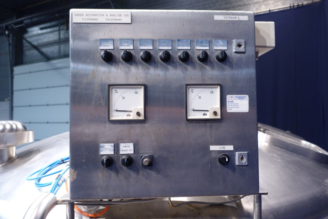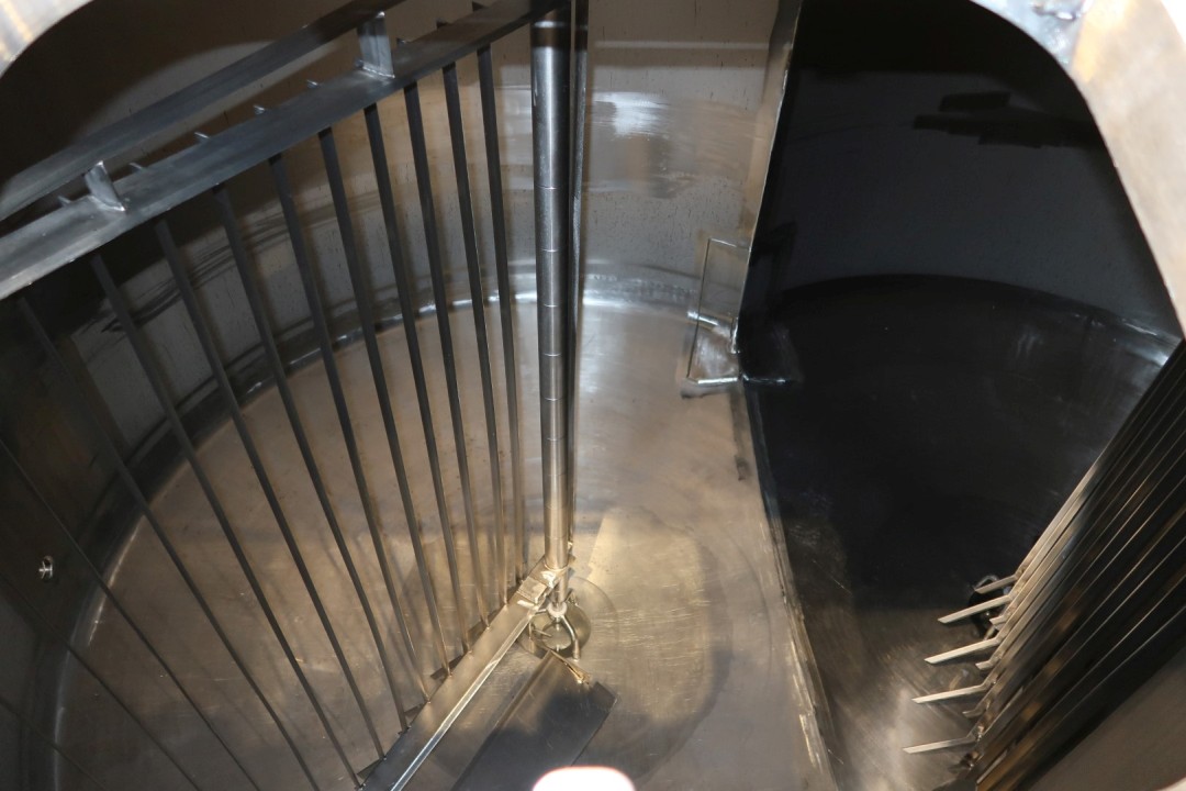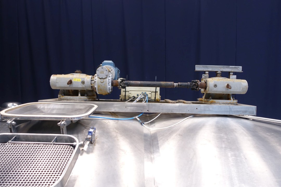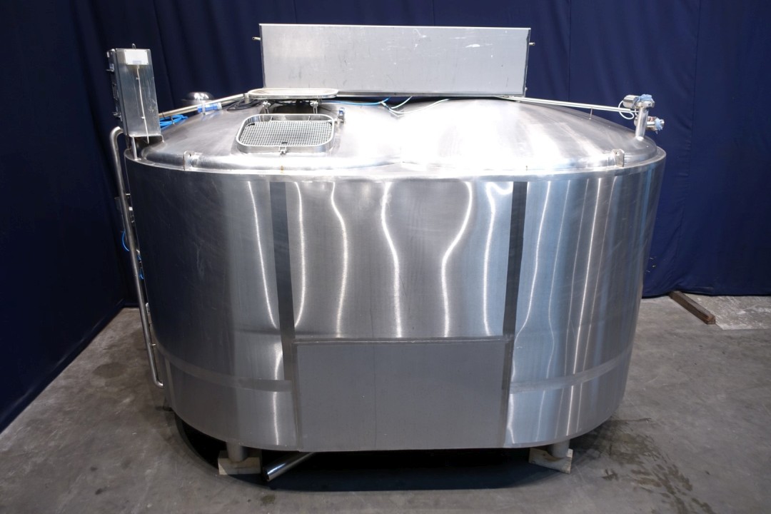 Cheese vat - cheese curd making vat model doubel O. Manhole on top 53x40 cm - sightglass with lamp, With 2 whey outlet valves in the vatwall and 2 curd outlet valve centered in the middle conical towards with 100mm pipe. Drive motor 4,0 kW - 8,9 A - 1445 rpm - 50 Hz - reductor i = 30. CIP cleanable. Total dimensions: 422x265x315 cm (lxwxh) - weight: 2.950 kg's. New controls and auxilieries can be offered on request.