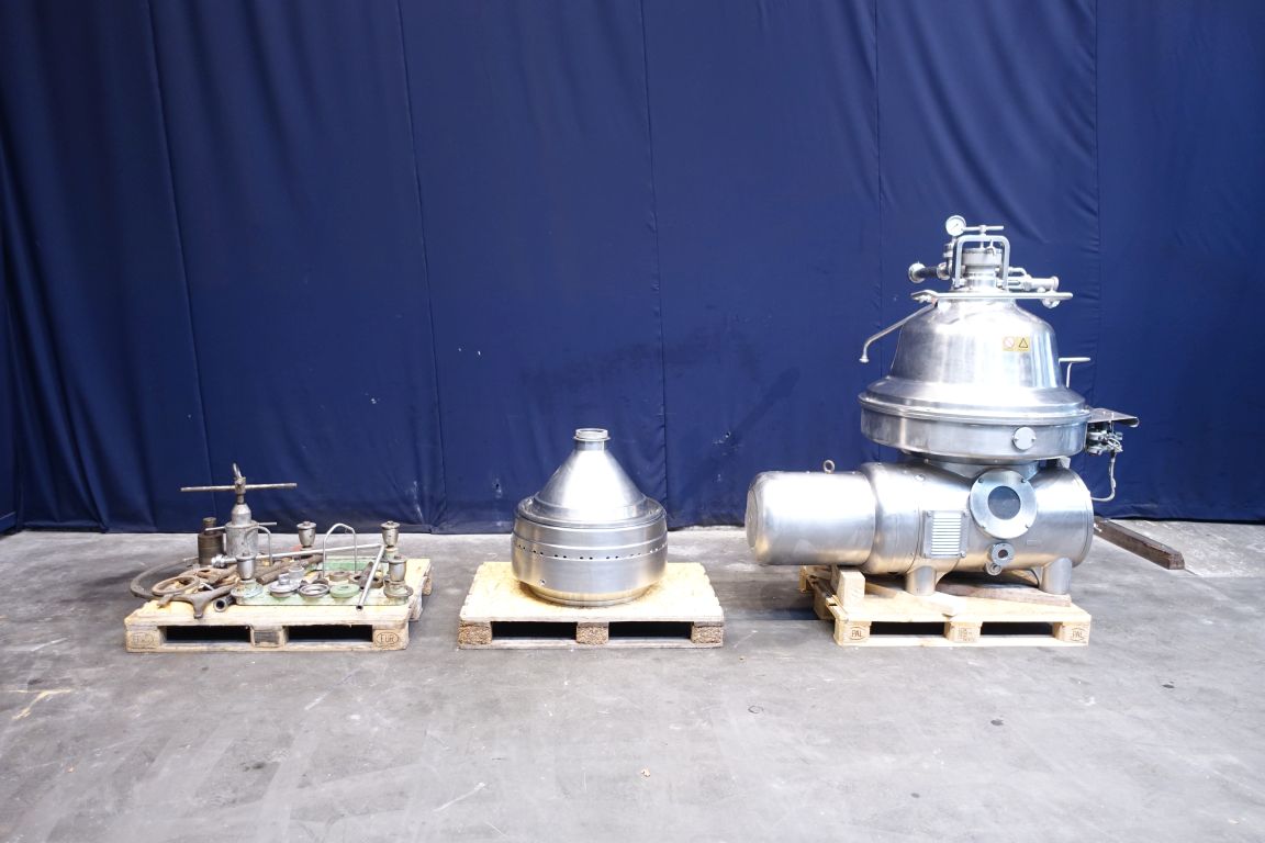 Bactofuge for bacteria spores removal (working temperature: 55/57°C). Bactofuge complete with bowl. Bowl speed: 4.700 rpm. Motor cover, base frame and inlet filter. Set of needed tools with ring key for maintenance. Instruction manual and spare parts list available. Excluding control panel.