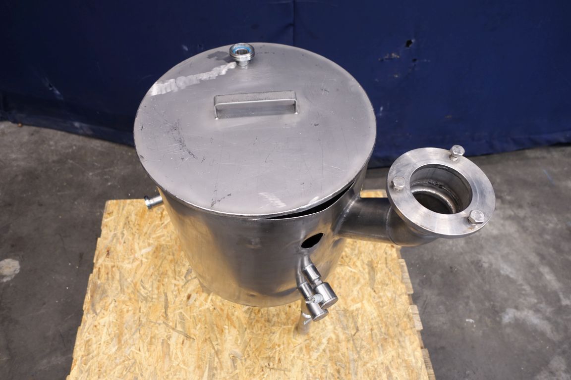 Collecting tank of separator. Previously used with a Westfalia MSA100 separator. Diameter 44 cm and heigth 44 cm. Hi-Low level sensor. Total dimensions: 50 x 65 x 95 cm.
