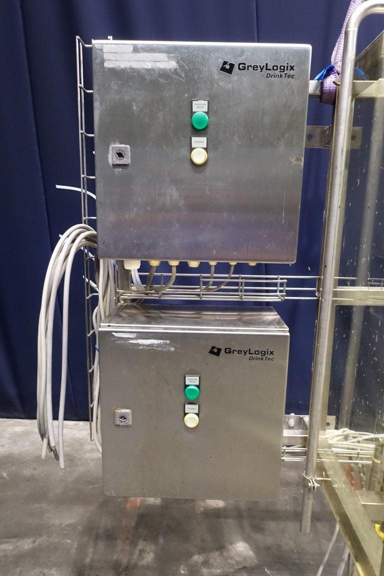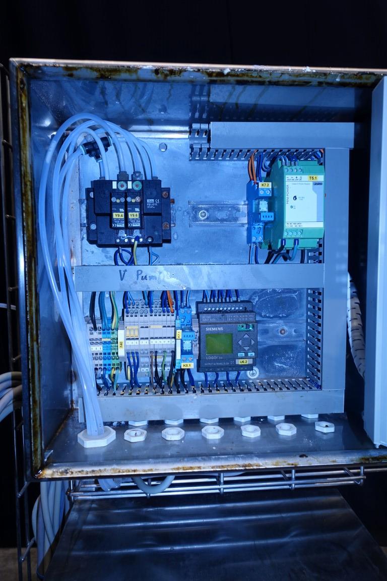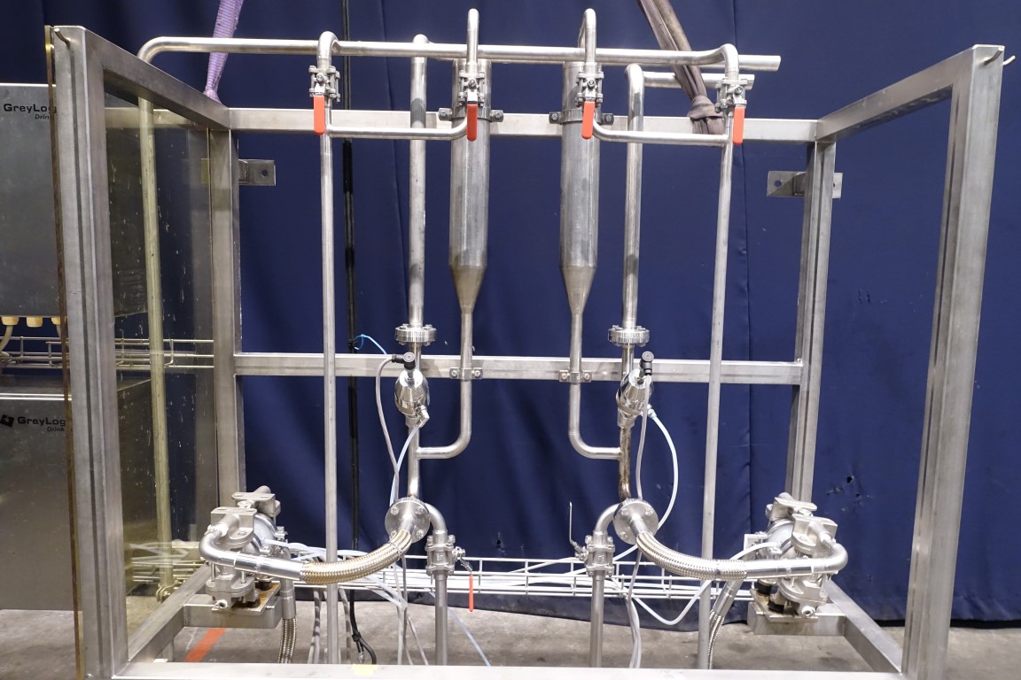 Lye dosing set. Membrane pump. GreyLogix DrinkTec controls. Total dimensions: 185 x 50 x 170 cm.